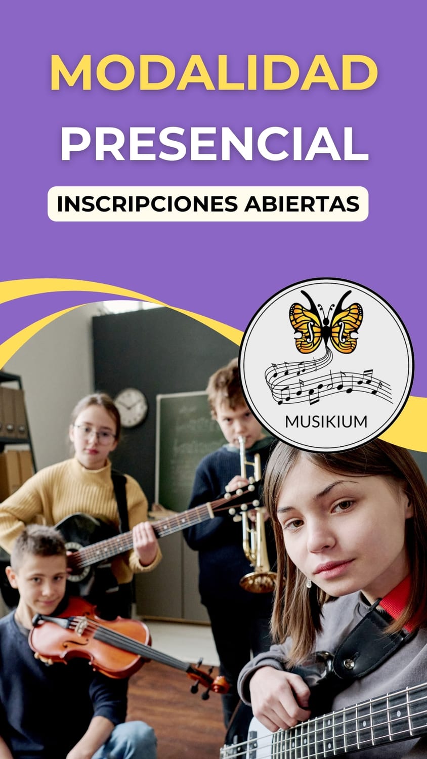 Clases de instrumento y lenguaje musical, modalidad presencial, compartidas e individuales.